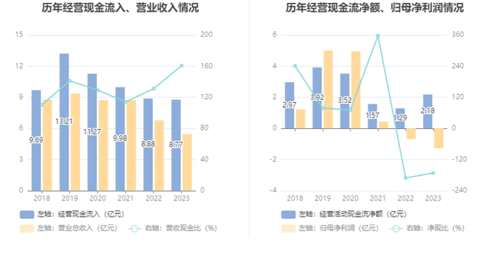 2023年,公司营业收入现金比为160.78%,净现比为-171.88%。