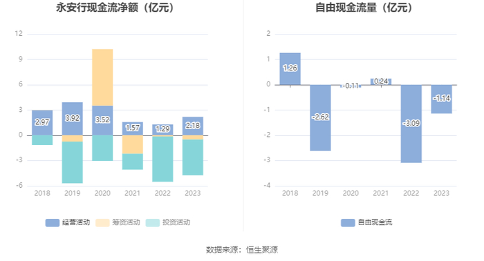 进一步统计发现,2023年公司自由现金流为-1.14亿元,上年同期为-3.09亿元。