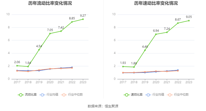 2023年,公司流动比率为9.27,速动比率为9.05。