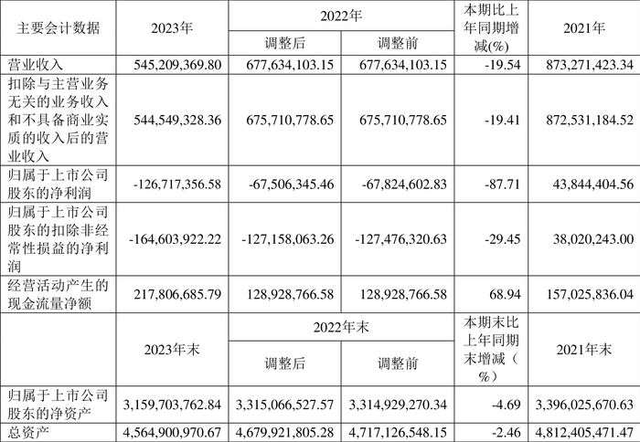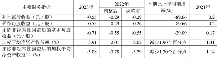 数据显示,2023年公司加权平均净资产收益率为-3.91%,较上年同期下降1.9个百分点;公司2023年投入资本回报率为-2.12%,较上年同期下降1.01个百分点。