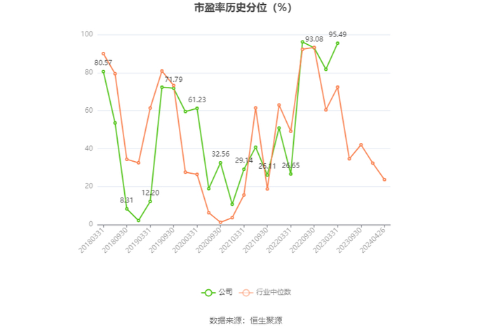 市盈率为负时,不显示当期分位数,会导致折线图中断。