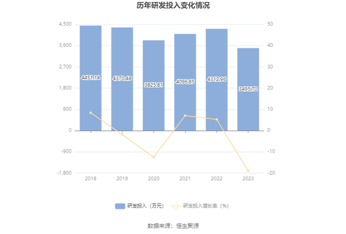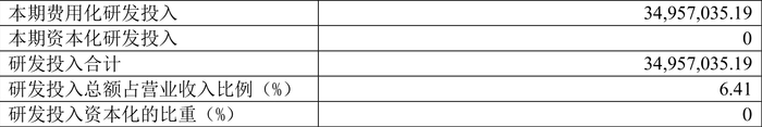 2023年全年,公司研发投入金额为3495.70万元,同比下降18.95%;研发投入占营业收入比例为6.41%,相比上年同期上升0.05个百分点。此外,公司全年研发投入资本化率为0。