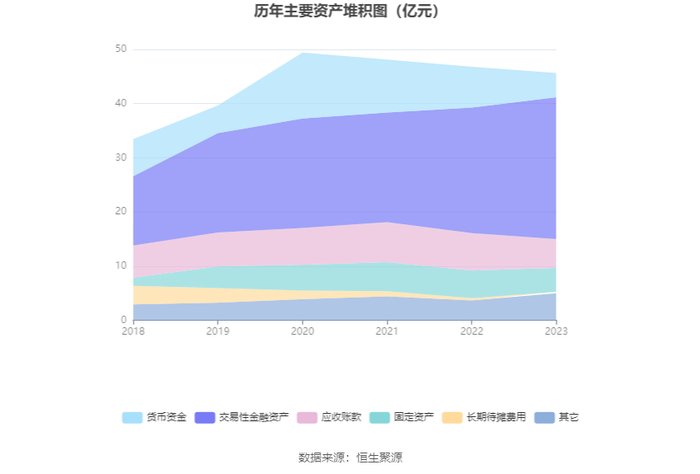 资产重大变化方面,截至2023年年末,公司交易性金融资产较上年末增加13.10%,占公司总资产比重上升7.88个百分点;货币资金较上年末减少40.67%,占公司总资产比重下降6.31个百分点;应收账款较上年末减少23.29%,占公司总资产比重下降3.16个百分点;固定资产较上年末减少13.44%,占公司总资产比重下降1.23个百分点。