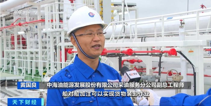 中海油能源发展股份有限公司采油服务分公司副总工程师 黄国良:船对船加注可以实现货物装卸作业和燃料加注作业同步进行,这样可以缩短船舶靠港时间,大大提升了港口服务能力和竞争力。“海洋石油302”船采用了可倒桅的设计,能够安全通过长江大桥,具备通航长江中下游的能力。同时该船具备B级冰区加强,可在漂流浮冰海域航行作业,服务范围非常广泛。