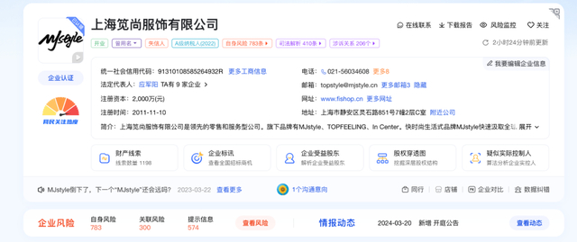 公开资料显示,笕尚服饰共有783条自身风险、300条关联风险,并且该企业是最高人民法院公示的失信企业。