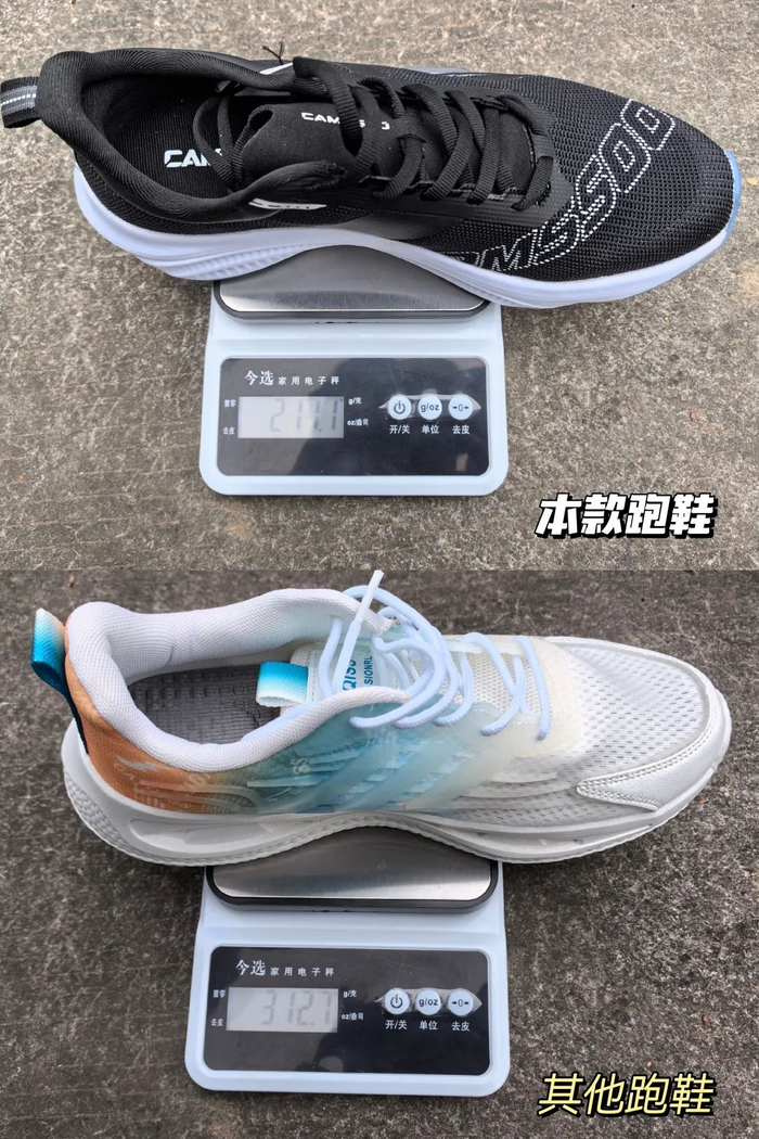 41码单只重量仅约211g,大约一盒牛奶的重量!跑起来不会累脚。