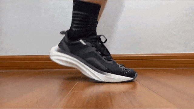 中底配合碳板将落地缓冲快速分解并予以回弹,带来持续的推进力。