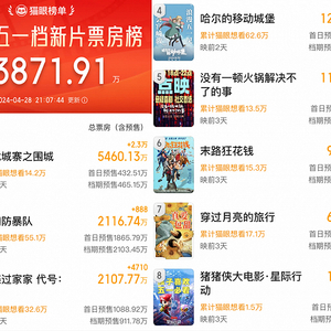 想看数最高的《哈尔的移动城堡》猫淘双平台未超过100万,其中还有不少从宫崎骏清明档新片《你想活出怎样的人生》转化而来。而预售成绩(含点映)在档期前两日才刚过1亿,其中还有一半是点映成绩,真正的首日预售刚超过5000万。