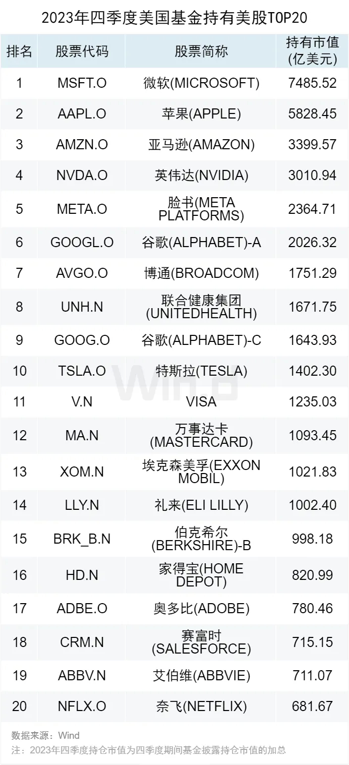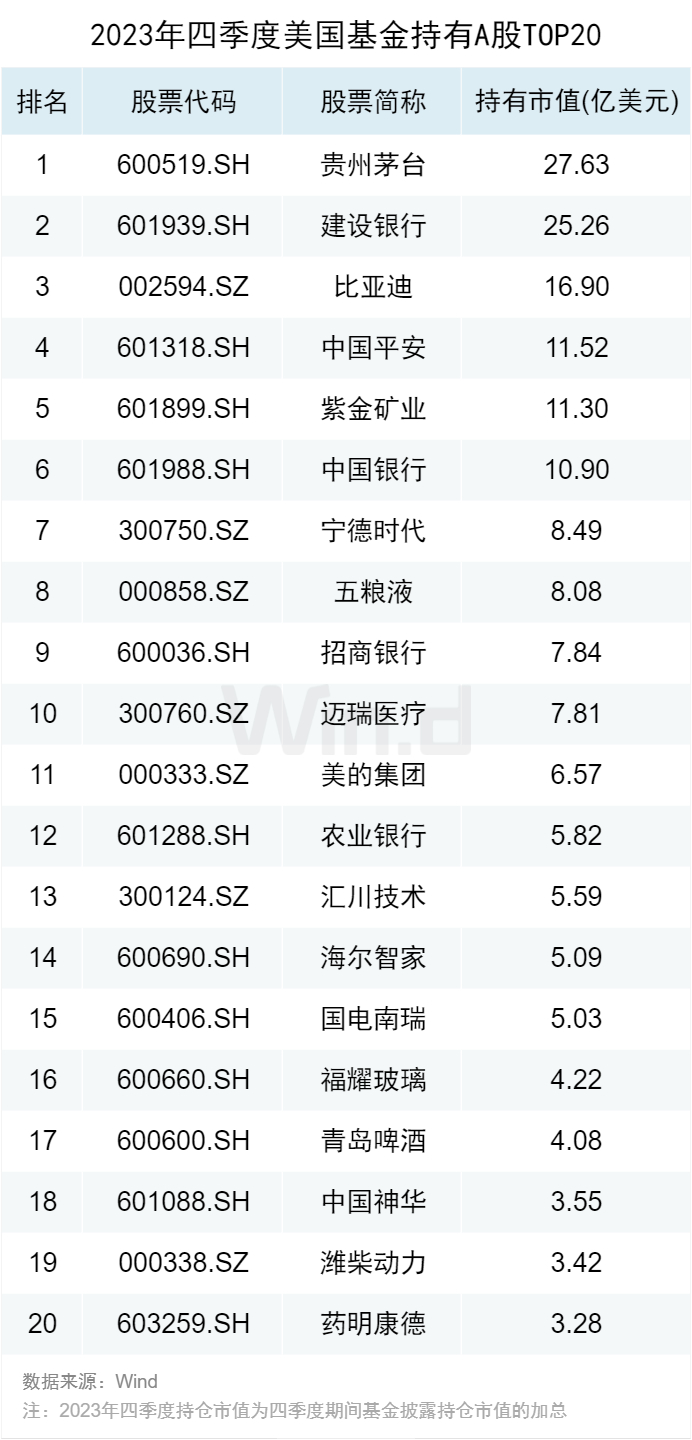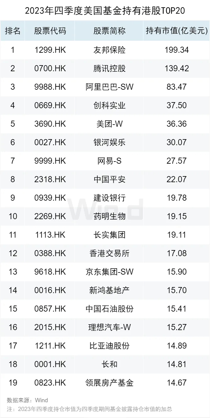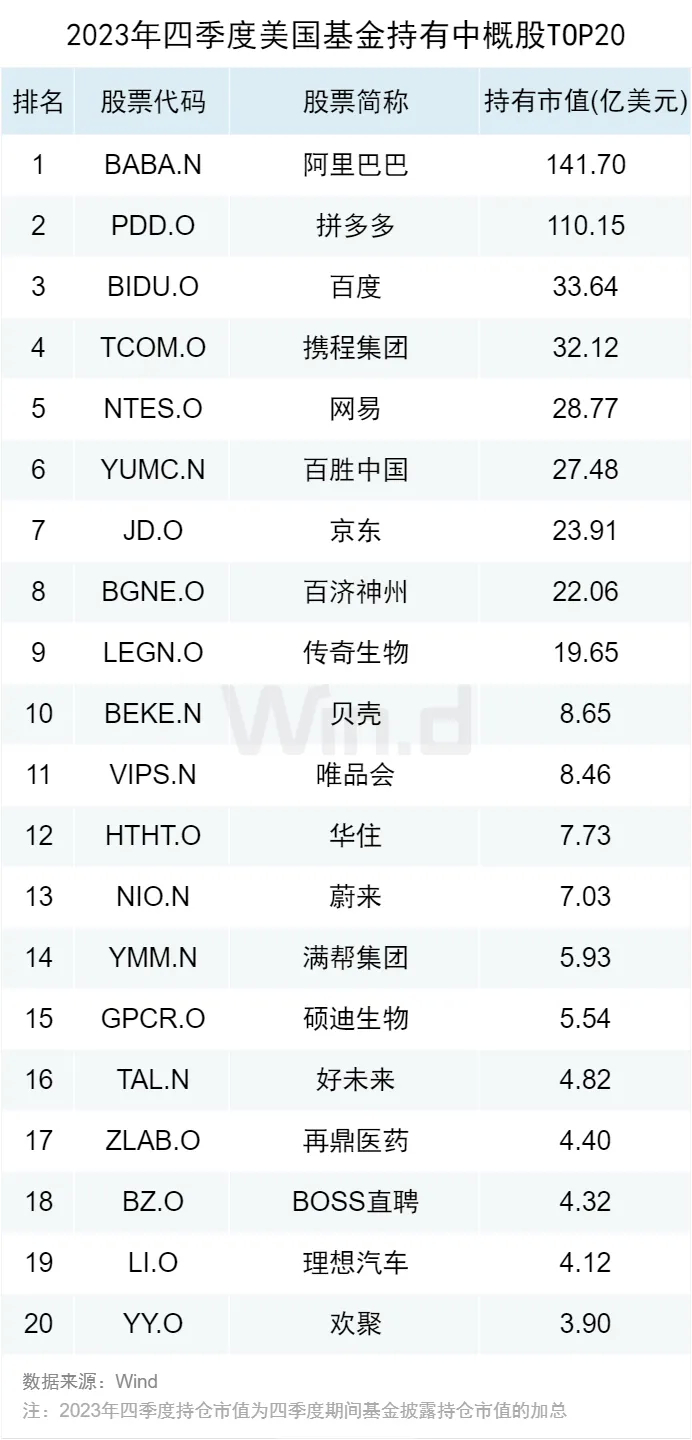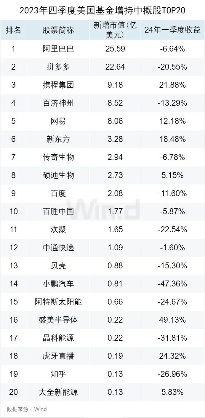 23年四季度美国基金重点持有了哪些A股、港股、中概股?