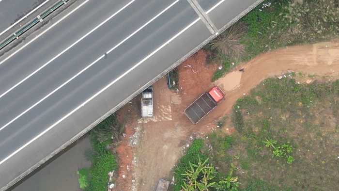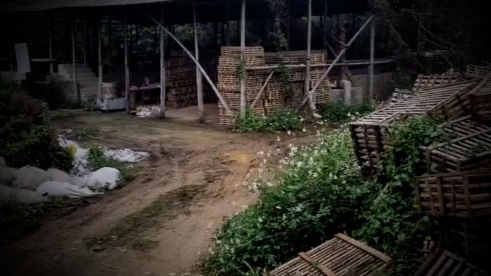 韩佳丽根据掌握的屠宰窝点地址,带着记者来到清远市清城区苏屋附近。摸察寻访时,一条断头路上的小货车车辙印,引起了记者的注意。沿着印记一路向前,记者和韩佳丽发现了一个建在鱼塘边上的铁皮简易棚。
