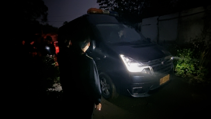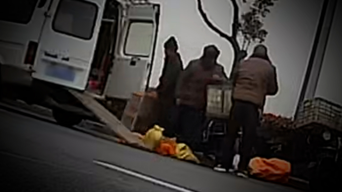 凌晨5点45分、6点07分、6点19分,记者在现场看到,有3名男子分批来到面包车旁,他们骑着大型电动车、头戴头灯,在电动车行李架上绑着一个大筐。三人出现后,陆续从大框内提出十几个编织袋随手扔在地上,编织袋在撞击后不时鼓出形状,疑似装有活物,记者从旁边走过时,可以听见清晰的猫叫声。随后,这些编织袋被快速转移进面包车。