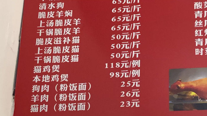 记者了解到,在广东一些城市,猫肉传统上被认为有祛湿、壮阳、滋阴的功效,食用者迷信猫肉具有“进补”的功效。记者在广东云浮市暗访时,就发现了街边存在不少特色餐馆或脆皮香肉馆,公然销售猫肉、狗肉。