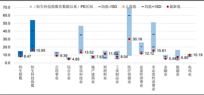 总结:随海外风险出清和国内政策支持,恒生科技指数为代表的行业估值或将迎来持续修复