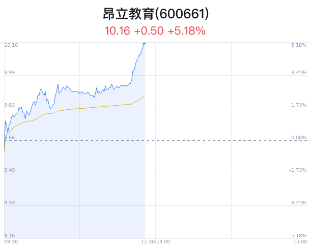 04月29日,昂立教育(600661)股价大幅上涨,截至11点21分,昂立教育上涨5.18%,报10.16元/股,突破10元整数关口,成交5212万元,换手率1.84%。