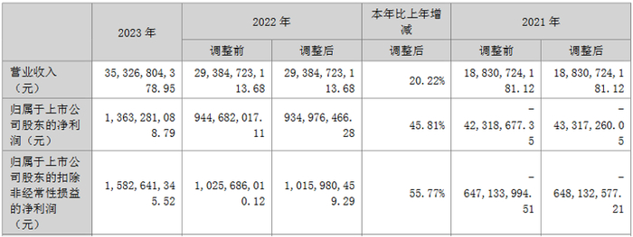 辛勤耕耘也收获了丰厚的回报。2023年,东方日升实现营收约353.27亿元,同比增长20.22%;归母净利润13.63亿元,同比增长45.81%;扣非归母净利润约15.83亿元,同比增长55.77%。