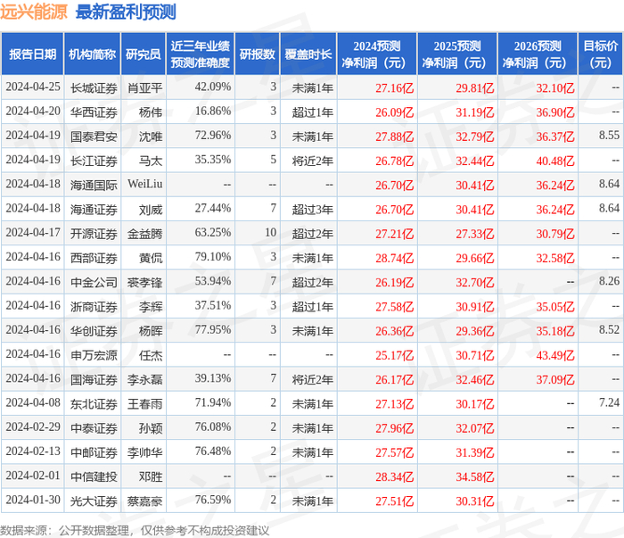 证券之星数据中心根据近三年发布的研报数据计算,西部证券黄侃研究员团队对该股研究较为深入,近三年预测准确度均值为79.1%,其预测2024年度归属净利润为盈利28.74亿,根据现价换算的预测PE为9.12。