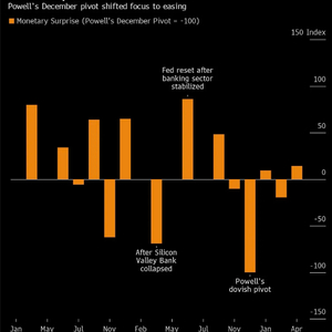 彭博经济研究编制的美联储情绪指数(由基于60000多个美联储头条新闻的自然语言处理算法提供支持)显示,鲍威尔在去年12月发表了重大的鸽派讲话——通过暗示将更快转向降息,他当时的言论提振了市场并帮助经济摆脱了低迷。但到目前为止,四个月过去了,随着需求的强劲增长和通胀高于目标,鲍威尔可能会被迫做出逆转。