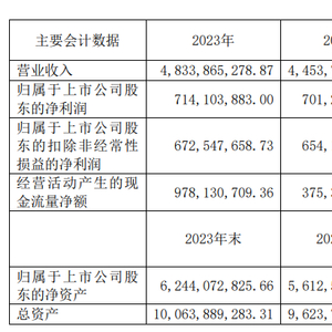 挖贝网4月29日,旭升集团近日发布2023年年度报告,报告期内公司实现营业收入4,833,865,278.87元,同比增长8.54%;归属于上市公司股东的净利润714,103,883.00元,同比增长1.83%。