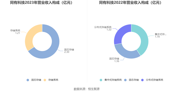 分产品来看,2023年公司主营业务中,固态存储收入2.30亿元,同比增长69.27%,占营业收入的65.43%;存储系统收入1.21亿元,同比下降59.49%,占营业收入的34.57%。