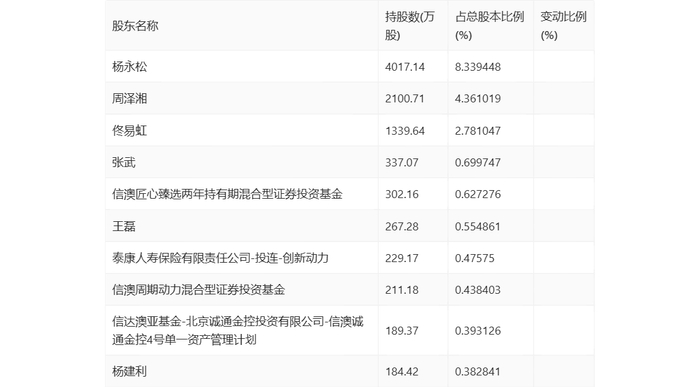 年报显示,2023年年末公司十大流通股东中,新进股东为信澳匠心臻选两年持有期混合型证券投资基金、泰康人寿保险有限责任公司-投连-创新动力、信澳周期动力混合型证券投资基金、信达澳亚基金-北京诚通金控投资有限公司-信澳诚通金控4号单一资产管理计划,取代了三季度末的德邦半导体产业混合型发起式证券投资基金、齐宇思、北京华创瑞驰科技中心(有限合伙)、金鹰科技创新股票型证券投资基金。在具体持股比例上,张武持股有所下降。