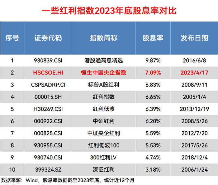 不过有人可能会好奇,一个香港市场的央企指数,怎么会纳入红利投资的范畴?事实上根据Wind,恒生中国央企指数2023年底的股息率高达7.05%,比起一众红利指数也当仁不让。