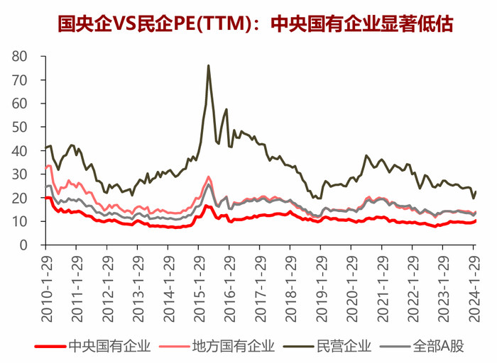 另一方面,目前央国企的估值相对民企仍旧显著被低估,央国企改革的红利还尚未在资本市场充分体现。这其中有着复杂的成因,譬如,国企目前承担着一定的社会责任,这一点尚未被纳入估值;国企改革相关主题基金数量还比较少,已有的规模比较小,增量资金不足;国企的治理尚未往创新性方向转变,还可以挖掘出更大的价值等。