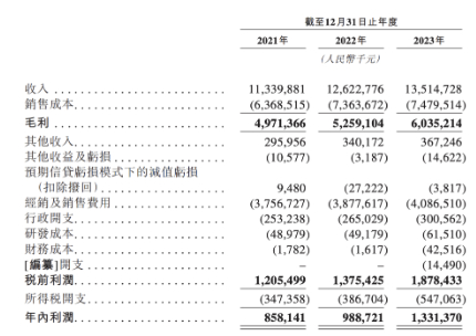根据披露,2021年至2023年,华润饮料营业收入分别为人民币113.4亿元、126.2亿元和135.1亿元,净利润分别为8.58亿元、9.89亿元、13.31亿元,而其中超92%的收入由怡宝贡献。