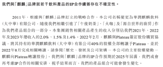 “鉴于原材料及包装材料成本预计将继续占我们销售成本的一大部分,原材料及包装材料价格的任何大幅上涨均可能对我们的利润率造成重大不利影响。”华润饮料也在招股书中表示。