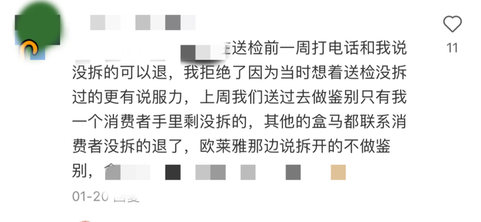 乐乐还表示,投诉申请发起后,盒马要求未拆包装的产品退回,但欧莱雅官方表示,拆了包装的产品不提供检验,所以盒马才会要求没拆包装的退回,但不拆怎么知道质量有问题?拆了就无法检验,这就是个死循环。
