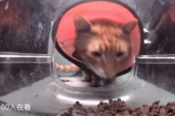 一些猫咪在直播中意外成为网红,比如因为只吃刚掉落的新鲜猫粮而走红的橘猫“新鲜哥”。去年夏天,它被首次上传到街猫App中的“猫屋”中,并在直播中贡献出那张带着鄙夷表情的经典表情包。
