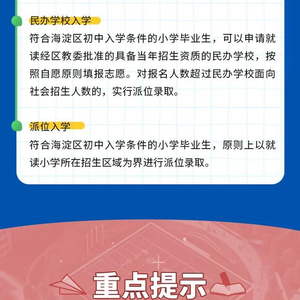 在“跨区”升学政策方面,海淀区继续执行“2022年1月1日后,户籍从外省市或本市其他区迁入海淀区的适龄儿童申请入小学时,不再对应登记入学划片学校,在区内协调解决”“2022年1月1日后,海淀区户籍但学籍不在海淀区的本市就读小学毕业生,其户口所在地址与法定监护人在京合法房产地址不一致,申请在海淀区升入初中的,在区内协调解决”等政策。