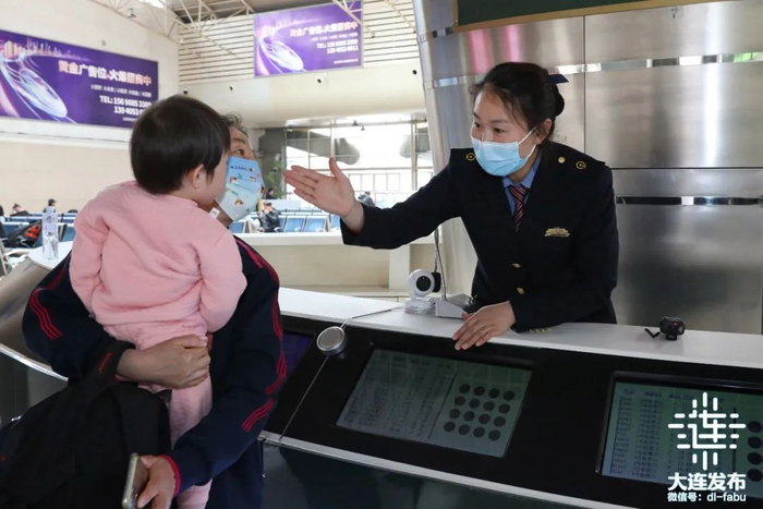 小长假期间,大连站加强售票、候车、乘降、进出站等各环节引导和服务,每天安排50名志愿者加强引导服务,在客流高峰时段动态调整验票、安检通道数量,减少旅客排队时间。在站台设置45处便捷换乘点,在各个进站口设置“急客通道”,在候车室设立了旅客驿站、无障碍通道和免费手机充电桩等服务设施,使旅客出行更加通畅和温馨。