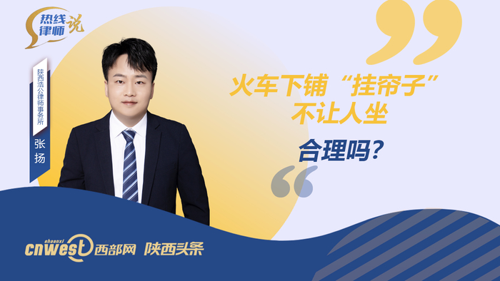 西部网讯(记者 杨晏宁)近日,年轻人坐火车卧铺挂帘不让其他乘客坐的视频引发广泛讨论。中国铁路12306客服进行回应:没有明确规定火车下铺不能使用围挡,“在不影响其他旅客的情况下可以使用”。那么,火车下铺的使用权应不应该跟中上铺乘客共享?对此,陕西浩公律师事务所张扬律师进行了解读。