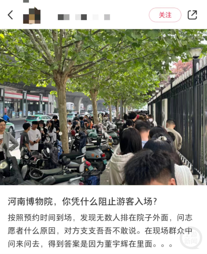 多位游客反映河南博物院因董宇辉直播活动不让游客进入。网络图