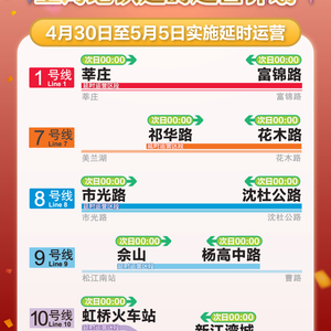 4月30日至5月5日,1、7、8、9、10、13号线延时运营