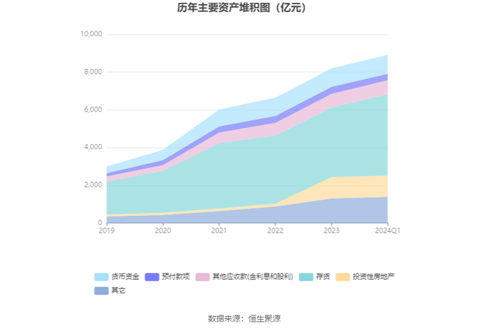 资产重大变化方面,截至2024年一季度末,公司存货较上年末增加16.69%,占公司总资产比重上升3.33个百分点;投资性房地产较上年末减少0.23%,占公司总资产比重下降1.13个百分点;货币资金较上年末增加1.67%,占公司总资产比重下降0.77个百分点;预付款项较上年末减少7.05%,占公司总资产比重下降0.65个百分点。