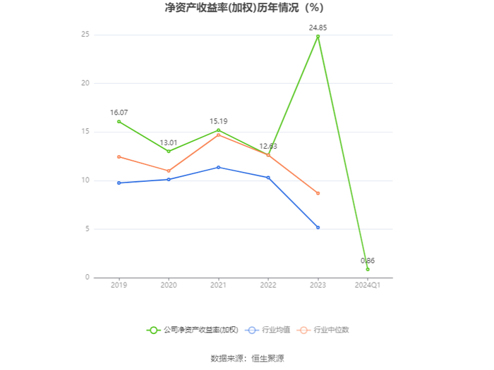 数据显示,2024年第一季度公司加权平均净资产收益率为0.86%,较上年同期下降0.53个百分点;公司2024年第一季度投入资本回报率为0.25%,较上年同期下降0.07个百分点。