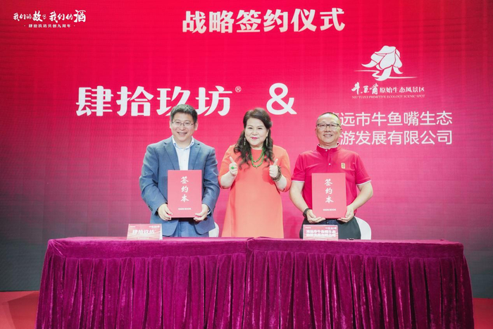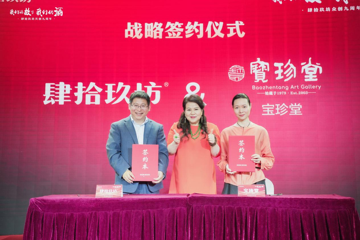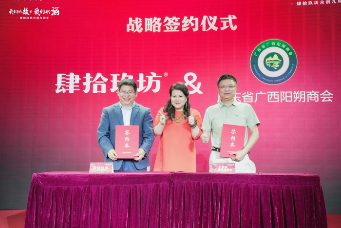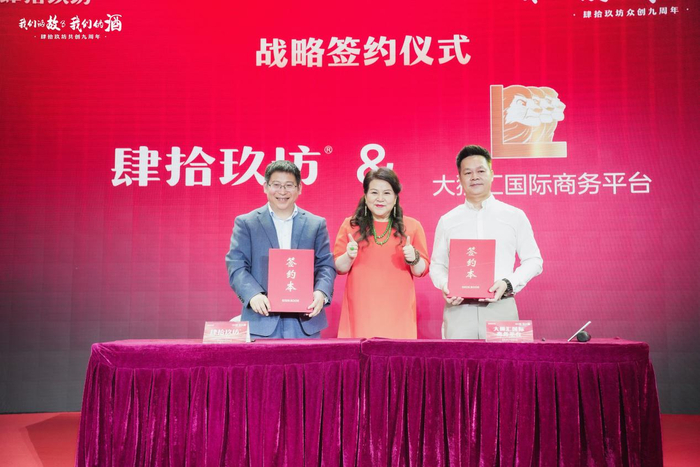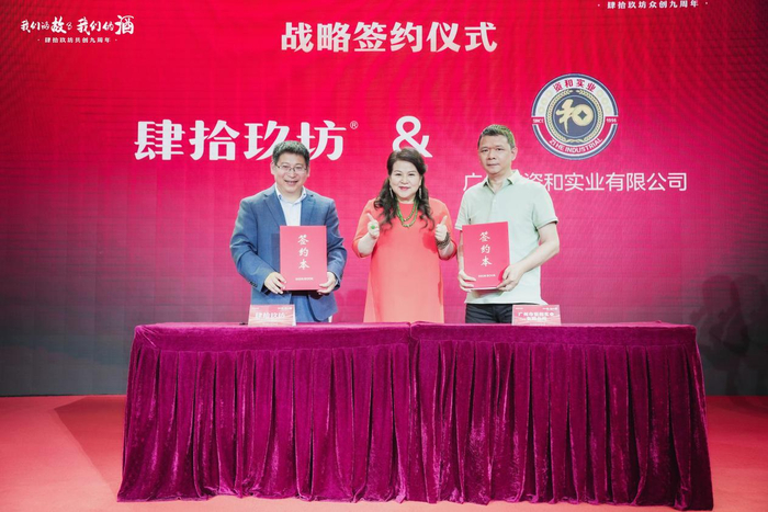 肆拾玖坊坚持创新,不断丰富“酱酒+”的实力和内涵,在本次会议上与广州市资和实业有限公司、广东美思集团、大狮汇国际商务平台、金刚企业集团、天津大田运输服务有限公司广州分公司、宝珍堂、广东省广西阳朔商会、广东鑫耀企业发展有限公司、清远市牛鱼嘴生态旅游发展有限公司、演说公社达成跨界合作,通过跨界创新合作的形式,共同探索“酱酒+”营销体制创新,进一步提升肆拾玖坊与战略合作伙伴的品牌影响力,同时也将以此为契机,站位新起点,立足产品和产业优势,推动双方在更宽领域、更大范围实现机遇共享、合作双赢。