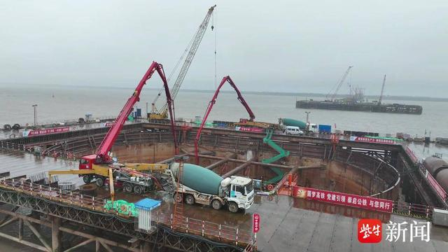 4月29日,北沿江高铁的两大控制性工程“南隧北桥”迎来重大进展。“南隧”——“领航号”开跑,南通“第六龙”开始穿江;“北桥”——崇启公铁长江大桥首个主墩承台浇筑完成。