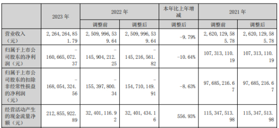挖贝网4月29日,金浦钛业 近日发布2023年年度报告,报告期内公司实现营业收入2,264,264,851.79元,同比下滑9.79%;归属于上市公司股东的净利润-160,665,072.37元,较上年同期亏损增加。