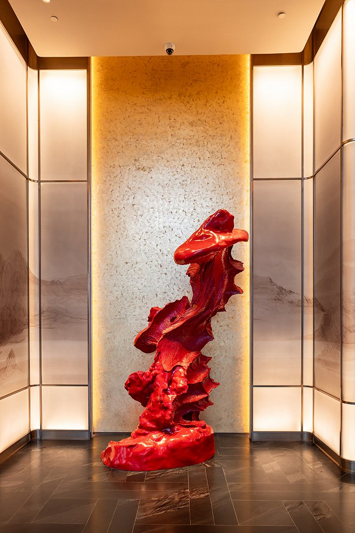 甫一进入酒店,那座名为“启云”的当代艺术雕塑以提拔之姿矗立眼前,仿佛主人之姿,热情欢迎来自四面八方的贵宾。