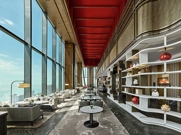 视野在51层充裕的挑高和空间延伸中得以释放,穿过陈列品琳琅满目的博古架,或与碧海青空不期而遇,或在雾霭蒙蒙中迷离似幻,视觉挑逗心弦的一丝波动,随之是长久的放松与平和。
