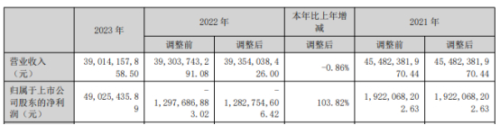 挖贝网4月29日,中南股份 近日发布2023年年度报告,报告期内公司实现营业收入39,014,157,858.50元,同比下滑0.86%;归属于上市公司股东的净利润49,025,435.89元,较上年同期扭亏为盈。