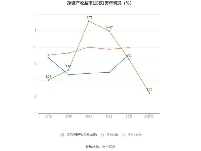 数据显示,2024年第一季度公司加权平均净资产收益率为3.70%,较上年同期下降0.35个百分点;公司2024年第一季度投入资本回报率为3.51%,较上年同期下降0.39个百分点。