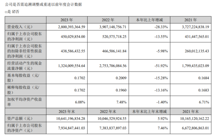 报告期内经营活动产生的现金流量净额为1,324,009,554.64元,截至2023年末归属于上市公司股东的净资产7,934,847,441.03元。