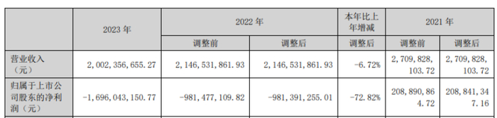 挖贝网4月29日,昇辉科技 近日发布2023年度报告,报告期内公司实现营业收入2,002,356,655.27元,同比减少6.72%;归属于上市公司股东的净利润-1,696,043,150.77元,上年同期-981,391,255.01元,同比亏损增加。