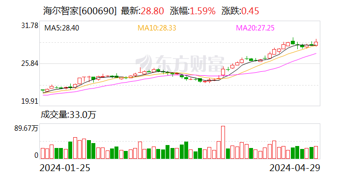 海尔智家:一季度业绩超预期 经营质量稳步提升