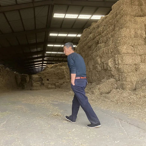 “阻耕”事件中的当事人张文军带记者查看仓库里的黄贮,图片左侧还有一小部分苜蓿青贮。