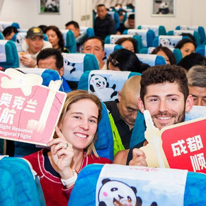 成都至奥克兰航线复航。图为乘坐首飞航班的乘客。