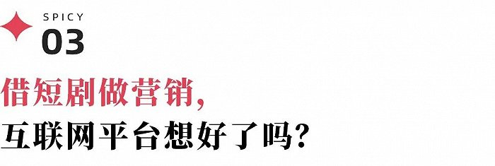 但对于大多数互联网平台而言,选择大张旗鼓单独开辟短剧板块、投入大量现金和资源做短剧并不是一件有性价比的事情,因此,很多平台目前主要是从品牌建设的角度,将短剧作为一种营销手段。
